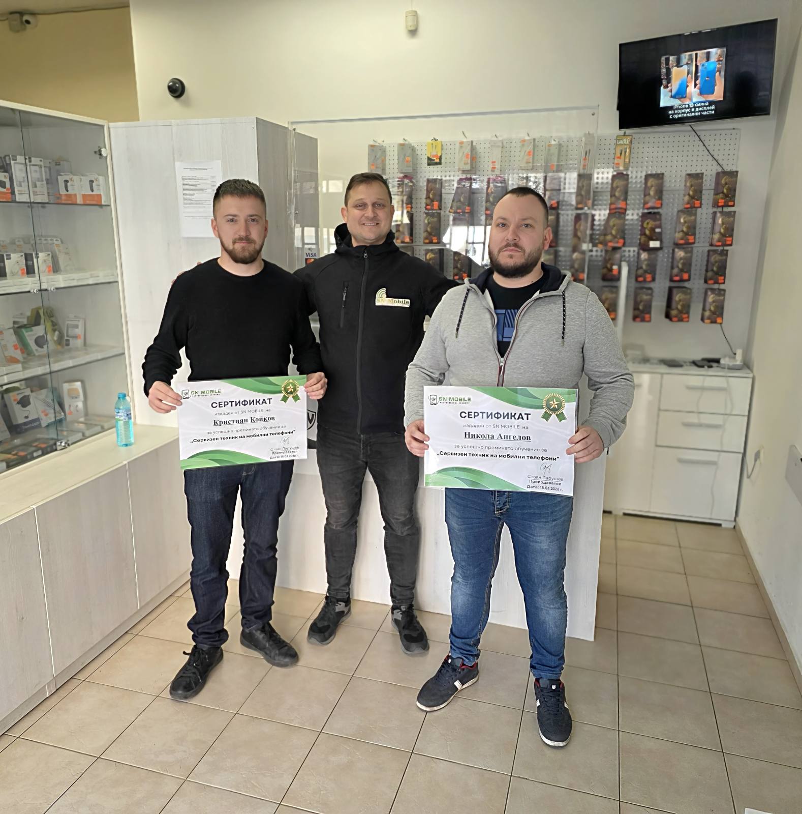 Всеки успешно завършил курсист получава сертификат от SN MOBILE Academy, удостоверяващ придобитите знания и умения в ремонта на мобилни телефони.